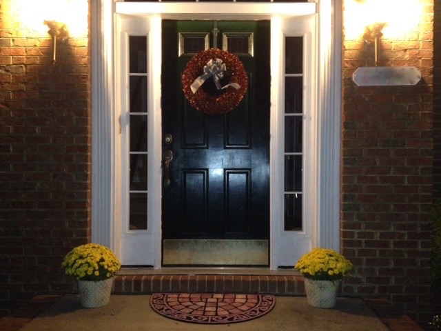 IMG_1588It took a while here–a close call with a hurricane, and some sweltering over-80 days that I tried to resent out of existence. But now I’m pretty sure Fall has fallen. I put up the autumn wreath, and stuck our Halloween-appropriate ribbon on it, and dropped a couple mums next to the front door, and suddenly it feels right.